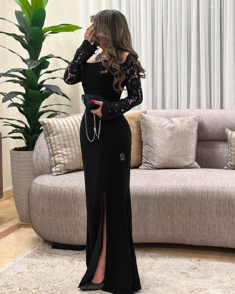 فستان اسود فاخر بدون أكمام بفتحة ساق