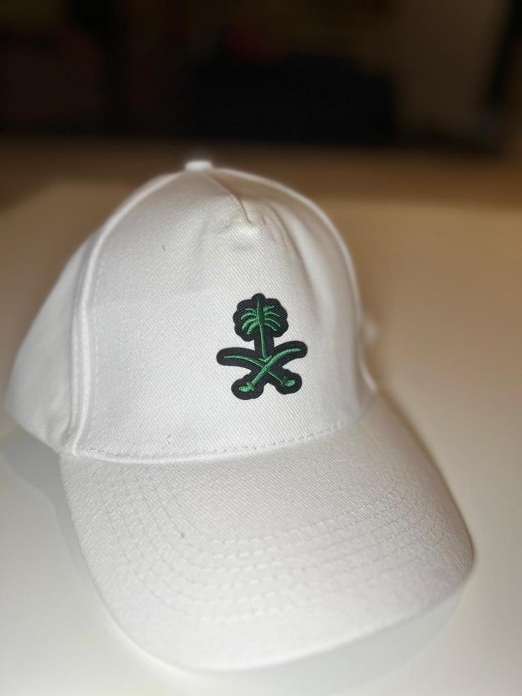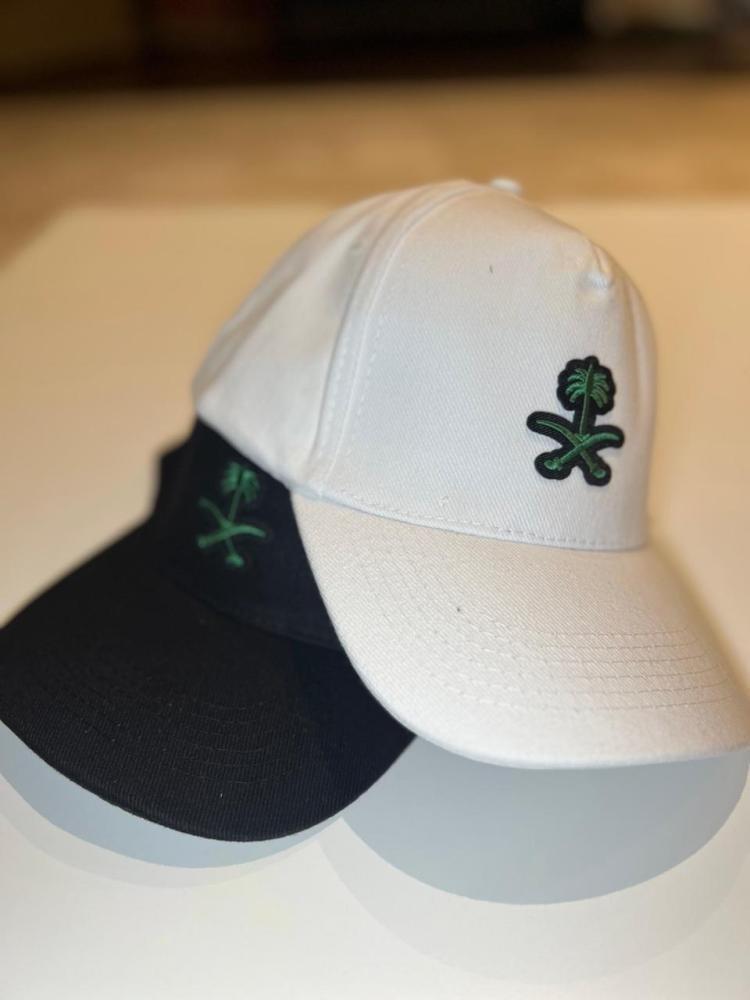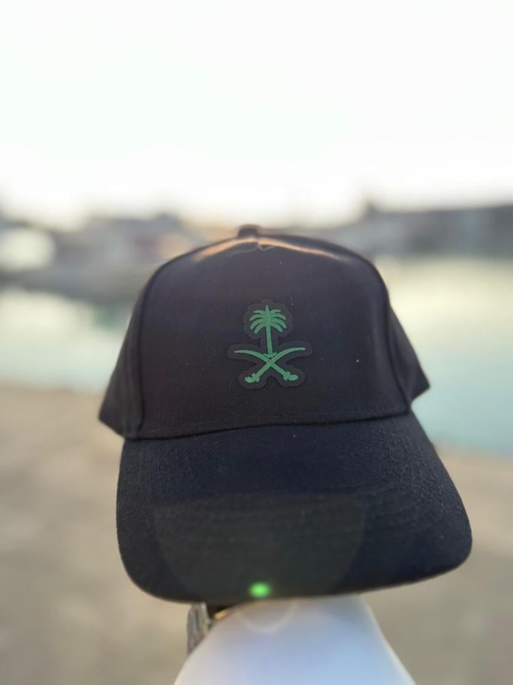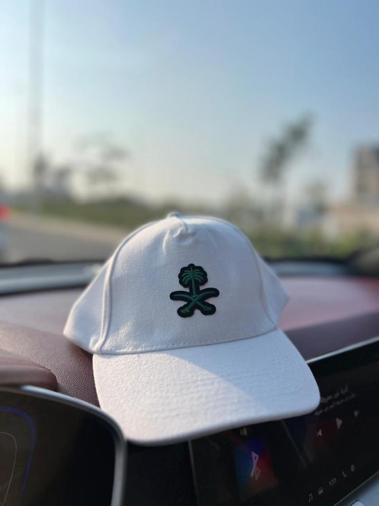 كاب أنيق يتميز بشعار المملكة العربية السعودية "السيفين والنخلة"، يعكس الفخر والانتماء الوطني.
