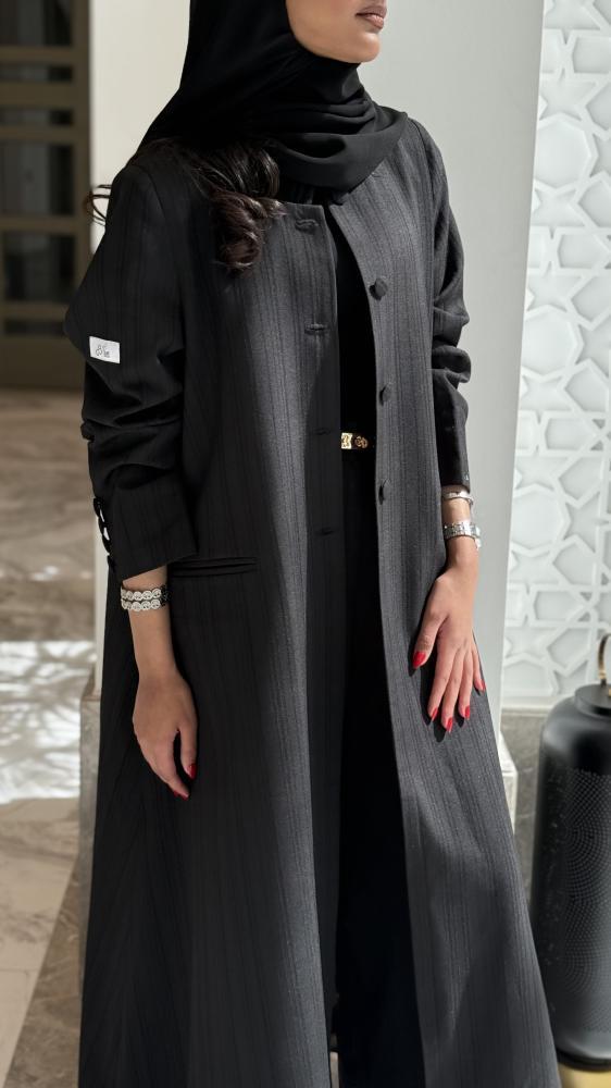 عبايه انيقه رسميه بقصه بليزر بقماش مقلم ، الملحقات : طرحه