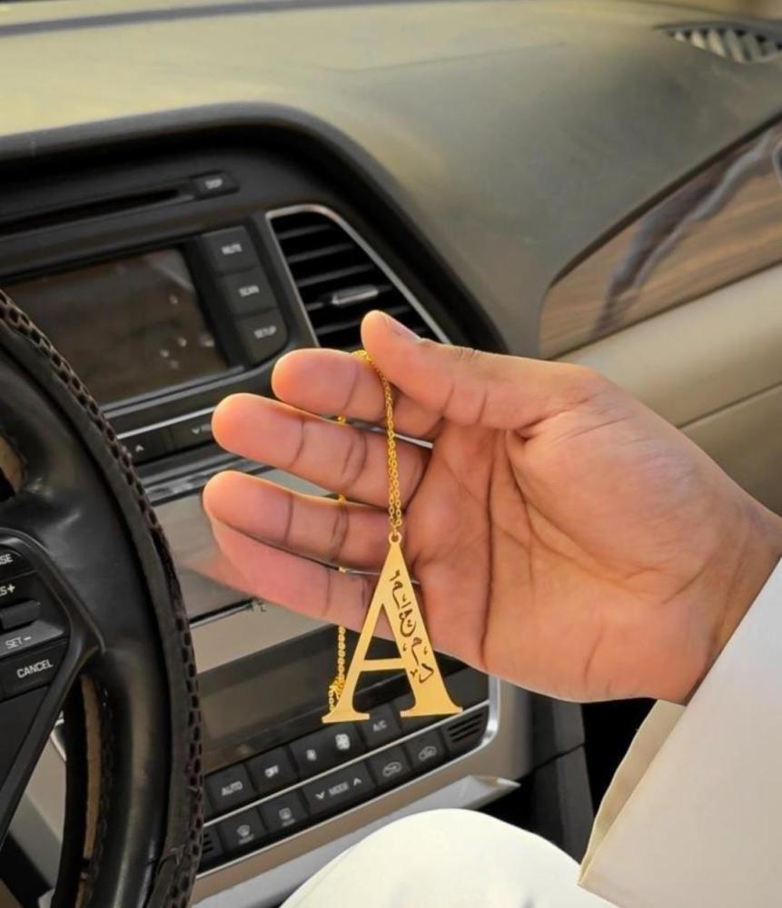 تعليقة سيارة بالاسم والحرف.