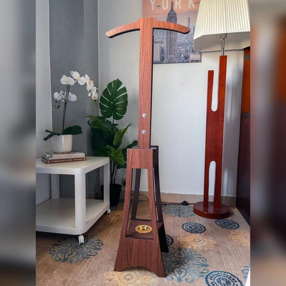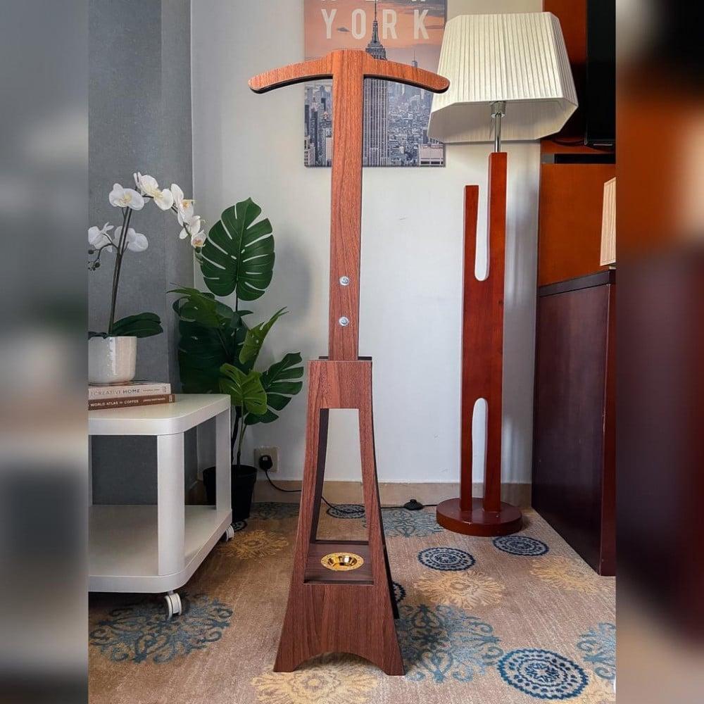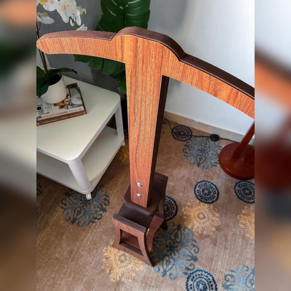 مبخرة ملابس خشبية هي قطعة فريدة من نوعها تعمل كزينة ومبخرة في نفس الوقت. تم تصميمها بأناقة لتبدو كعلاقة ملابس خشبية تقليدية. تتميز بتصميمها المتقن والأنيق مما يجعلها قطعة فنية رائعة لأي مكان توضع فيه.