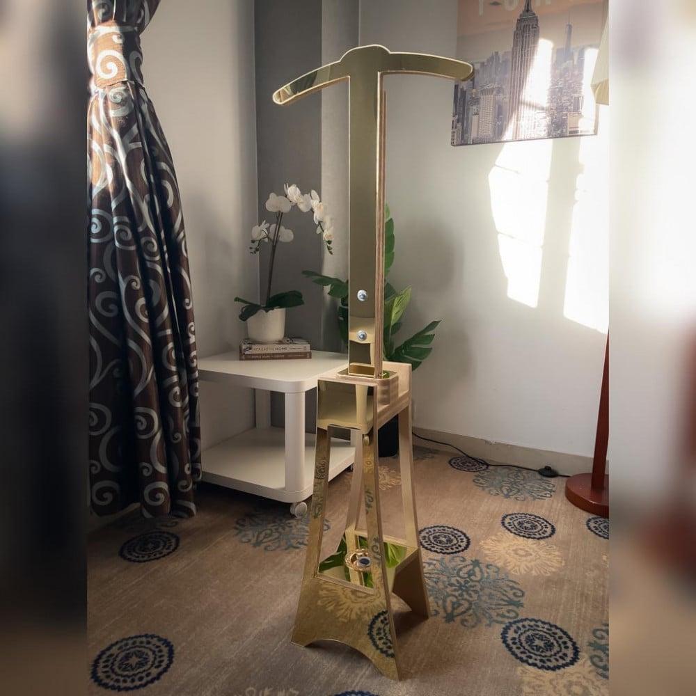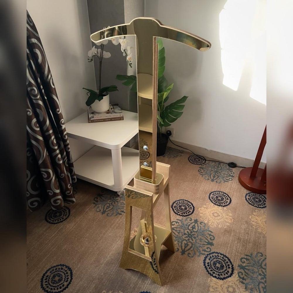 مبخرة ملابس خشبية هي قطعة فريدة من نوعها تعمل كزينة ومبخرة في نفس الوقت. تم تصميمها بأناقة لتبدو كعلاقة ملابس خشبية تقليدية. تتميز بتصميمها المتقن والأنيق مما يجعلها قطعة فنية رائعة لأي مكان توضع فيه.