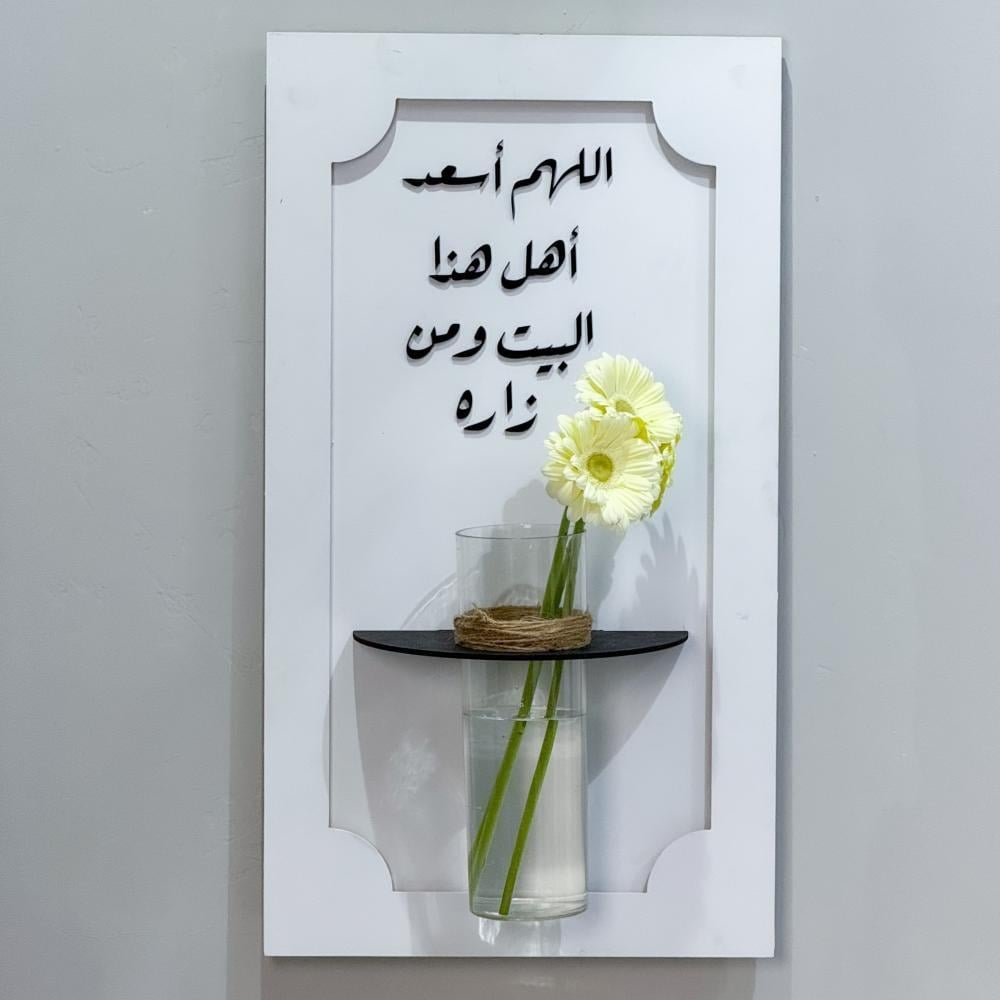 تأتي اللوحة مع حامل زجاجي شفاف أنيق مدمج في التصميم لوضع الزهور الطبيعية أو الصناعية ومبخرة أيضا لتعدد الأستخدام